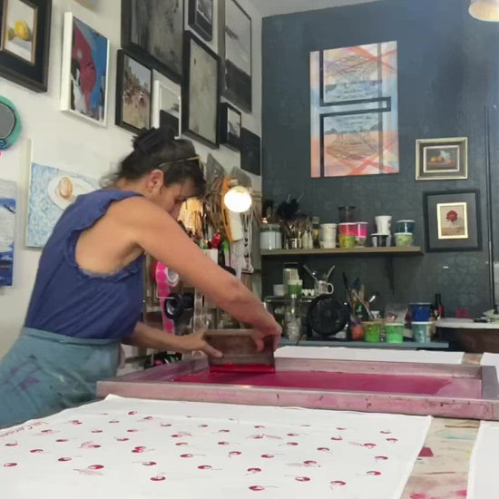 Designed and hand printed in San Diego, California with eco water based inks on USA made flour-sack towels. Each towel is done one at a time and you will find variation in them, they are all one of a kind.